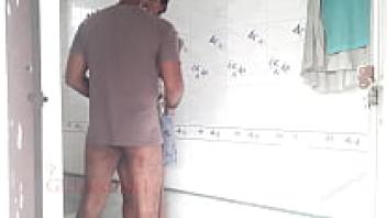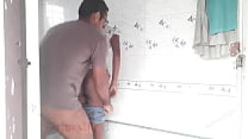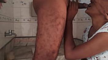 In the restroom, the neighbour engaged in outdoor sex with an Indian girl.