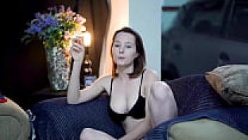 A stockinged U.K. voyeur giving instructions to a wanking dude