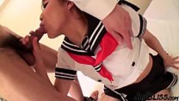 A young Japanese stepdaughter is shown getting a creampie in the video JapBliss 4K.