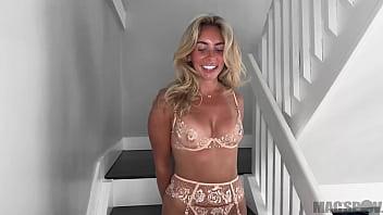 Bonnie Blue, a gorgeous blonde from the UK, is embraced and folded into Full Nelson by JMac.