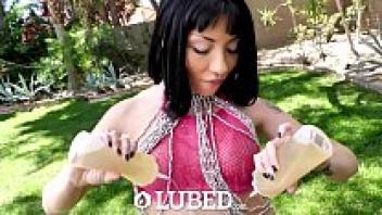 LUBED Outdoor sexy Rina Ellis in a sloppy, greasy love
