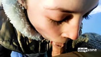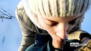 Winter blowjob done by an amateur outside