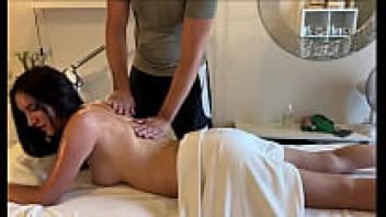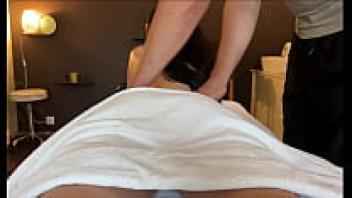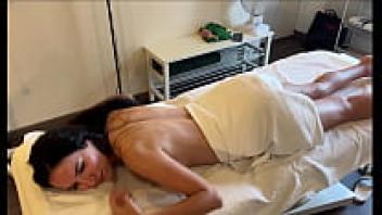 In the massage room, the masseuse gave a hot customer a lot of love and finished on her tits.