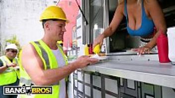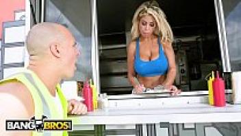 Bridgette B serves Sean Lawless hot dogs and two large tits at BANGBROS.