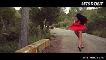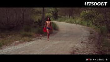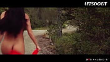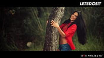 In the forest, LETSDOEIT, a gorgeous girl played by Alexa Tomas, fingers her juicy pussy before haphazardly finding a large cock to suck.