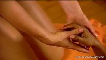 The erotic oil body massage is performed by a super hot girl.
