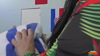 Super sexy redhead who works at a fake hostel After the French girl's boyfriend cums in her pants, the big busty woman with tattoos and gigantic natural tits seduces the French girl's boyfriend, resulting in a wild threesome with orgasms and cumshot.