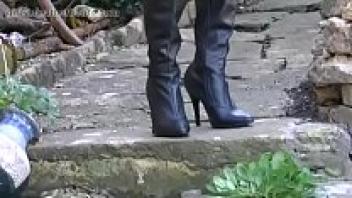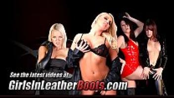 Close-ups of kinky blondes smoking in leather boots and exposing their upskirt pussy