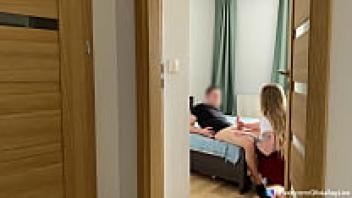 Stepbro jerks off, surprising the mischievous stepsister! Cream Pie! She received a Creampie!