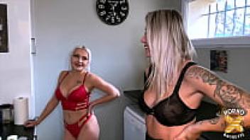 Gorgeous beauties Lisa and Ashley share a cock.