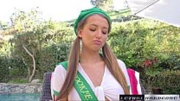 Megan Sage and Avery Adair give a passionate kiss in front of the camera in video-23 of the Teen Lesbian Girls.