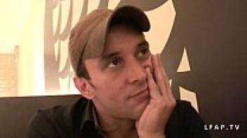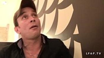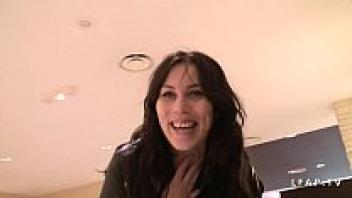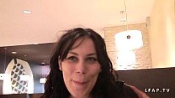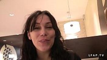 A slim French brunette in stockings is shown on an amateur anal casting couch.
