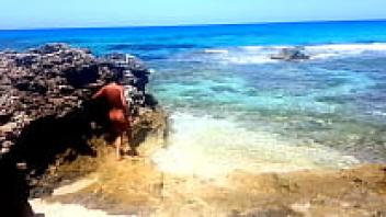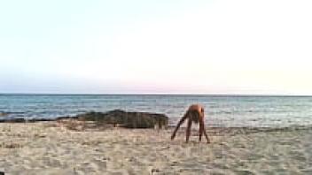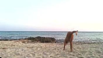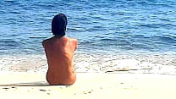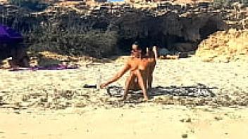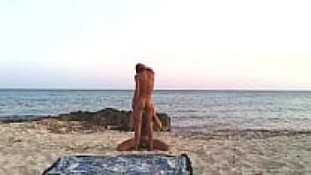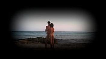 In the presence of other people, a couple engages in sexual activity on the beach.