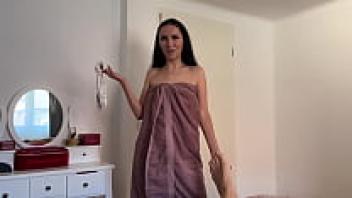 Before going to bed, the hot stepmother neglected to put on her underwear.
