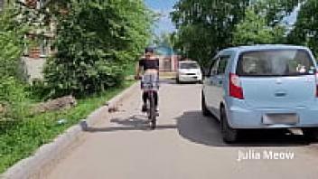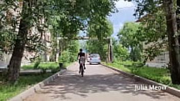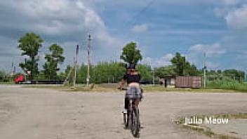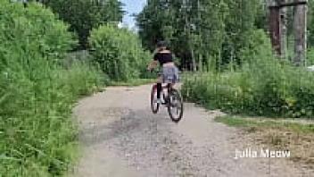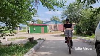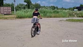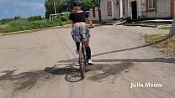 Observe the female biker that rides sans underwear beneath her skirt.