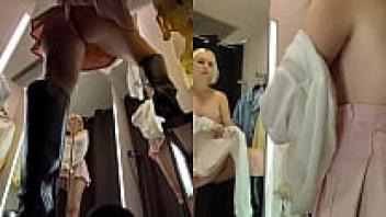 There is a camera in the dressing room. View from the Upskirt, Flash pussy