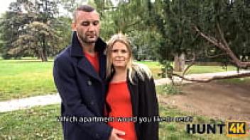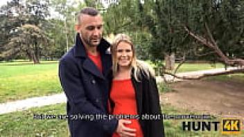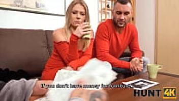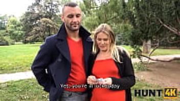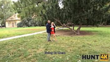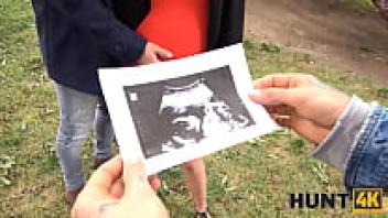 HUNT4K. Pregnant girl in red is tempted with money into pussy-drilling