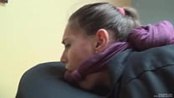 Hogtied Teen Gagged and Struggling With Rope Bondage