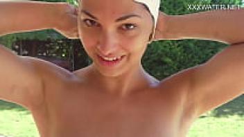 As she opens her hairy pussy for you, Aislynn takes a swing.