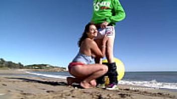 Charlotte de Castille: She gets sperm in her mouth while admiring the ass on the beach and the people walking by.