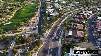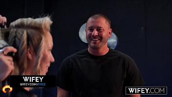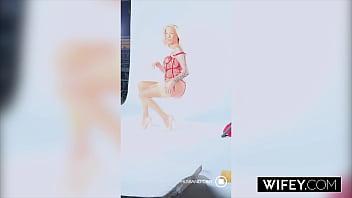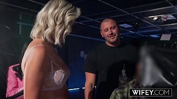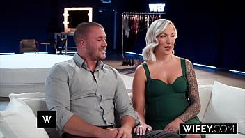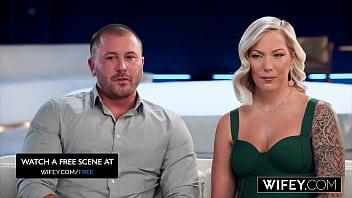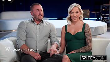 Candice, a blond and attractive wife, holds her husband's hand while taking a monster The BBC