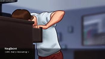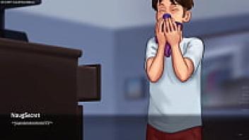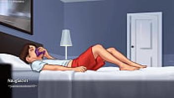In the Summertime Saga 07 3D porn game, Stepmom found him jerking off in her bed and cumming all over her pants.