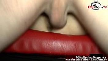Creampie gangbang party with user, slim German teen