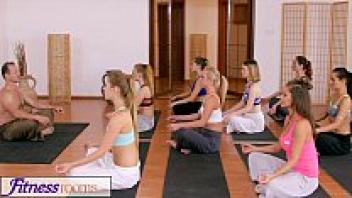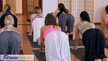 A fitness instructor at FitnessRooms Gym brings her yoga pants down for sexual activity.