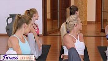 Lesbian threesome for hot and sweaty gym-goers at FitnessRooms