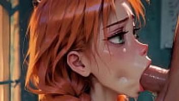 Until you cum in her mouth, this adorable college student with huge breasts wants to suck your cock - [AI Porn]