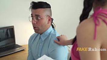 A large dick is drenched on the milking table by Rae Lil Black, who is offering massages.