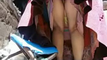 Girls without underwear wearing an upskirt
