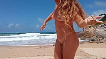 Nudism and naturism in a married couple flaunting themselves at Pinho Beach in Santa Catarina, Brazil