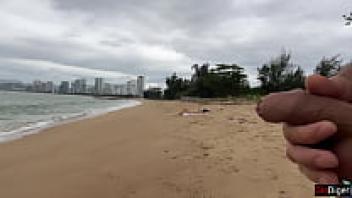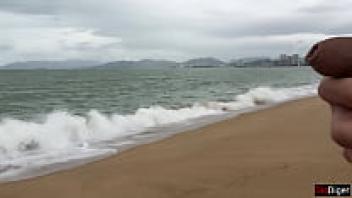 Cock flashing in public on the beach, Baby, can I cum on your tits?