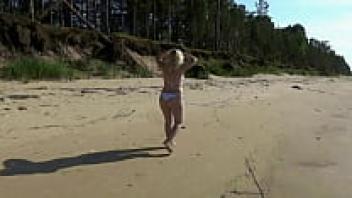 On a public beach, an exhibitionist voyeur displays a dick in front of two hungry chicks.