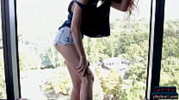Hottie Sunny Lane, who is completely natural, is seen playing with her pretty pink pussy!