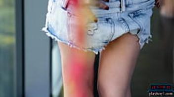 Her wet tongue is a favorite of Nacho Vidal, who stretches the lovely pussy of the petite blonde girl with a cruel and malicious intent. This thick, throbbing cock splatters hot milk all over her stomach.