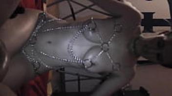 Tit whipping and brutal caning of amateur bdsm slaves with red hair Bunny suffering from clamped nipple torments and strict spanking