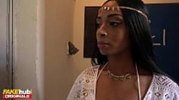 FAKEhub: During a job interview, horny Ebony MILF seduces the employer by milking his large cock with her attractive lips, enormous tits, and ass.