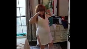 Steffi, the hotwife, dances in white satin.