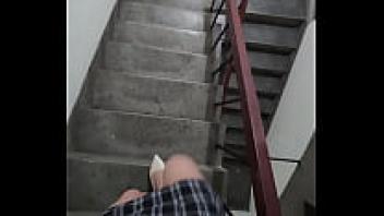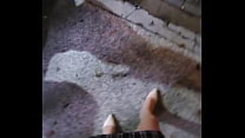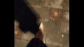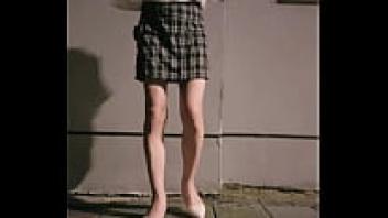 Shemale Ting Xuan cums on her legs and flashes her butt outside.