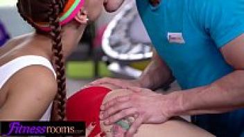 Sexy gyms with fitness rooms Czech and Latina women adore their trainer.