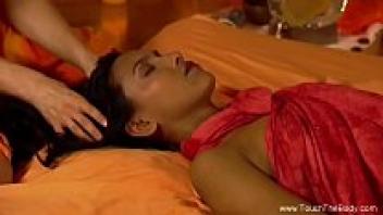 Massage techniques that involve sensual touch are explored by girlfriends.