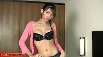HelloLadyBoy Skinny Thai Ladyboy Booty Plugged With Large Dick