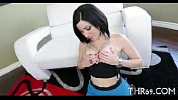 A skinny playgirl elevates her small frame to a stud's enormous dick.