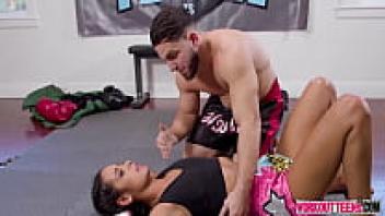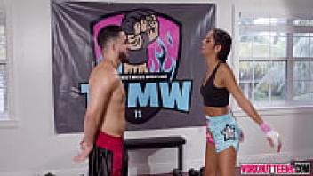 In the presence of her severe personal trainer, Vienna Black, Kali Roses, a seductive brunette seduces her.