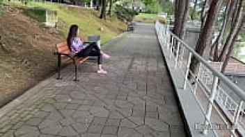 Plug-in Fishnet Pantyhose Pee with Public Solo Upskirt Flashing Ass