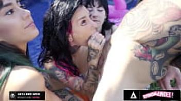 While on vacation, Janice Griffith has an incredible group romance with Joanna Angel and Charlotte Sartre.