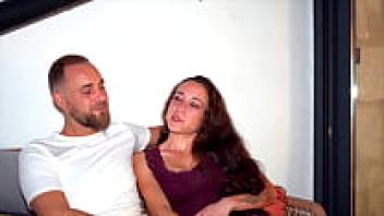 After having sexual relations on the couch, the college girlfriend receives a dosage of sperm.