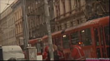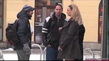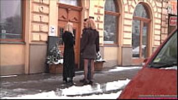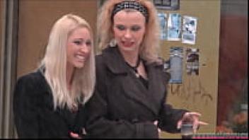 In the automobile, two attractive blonde bitches are making love to a man with a large, thick dick.